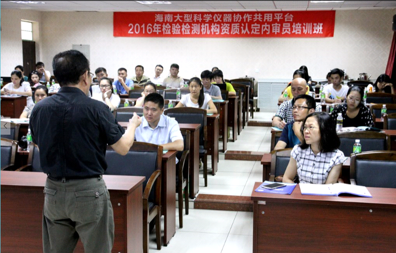 2016年7月8日-10日,永利官网分析测试中心在本校承办了海南大型科学仪器协作共用平台的“2016年检验检测机构资质认定内审员培训班”。