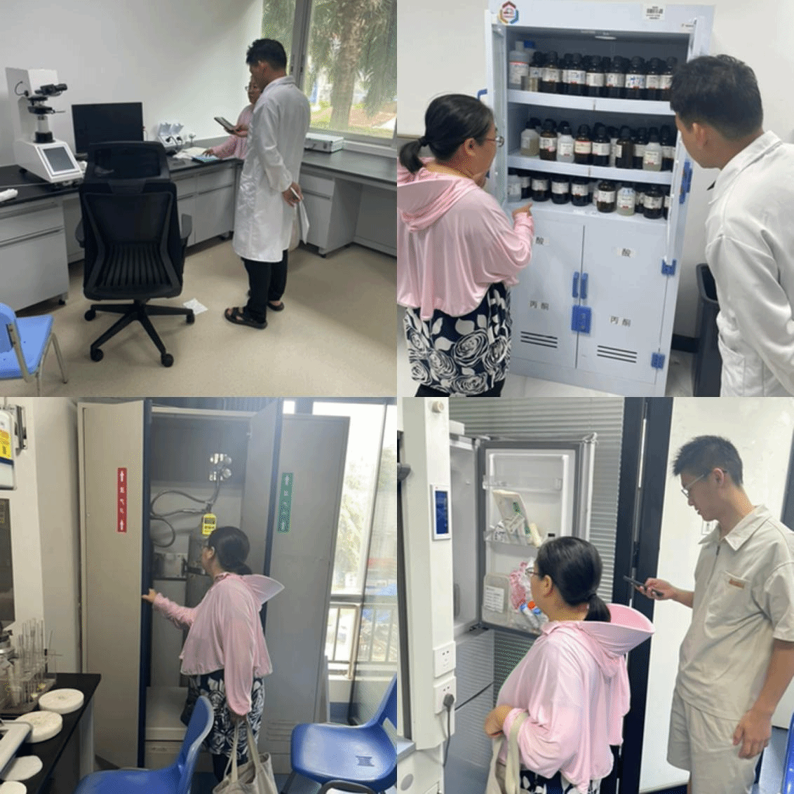 检查工作组对实验室的设施设备、实验仪器、化学品管理、实验室使用登记、消防安全和用电安全等方面进行了逐项排查,并详细记录了发现的问题,要求相关负责人及时进行整改。