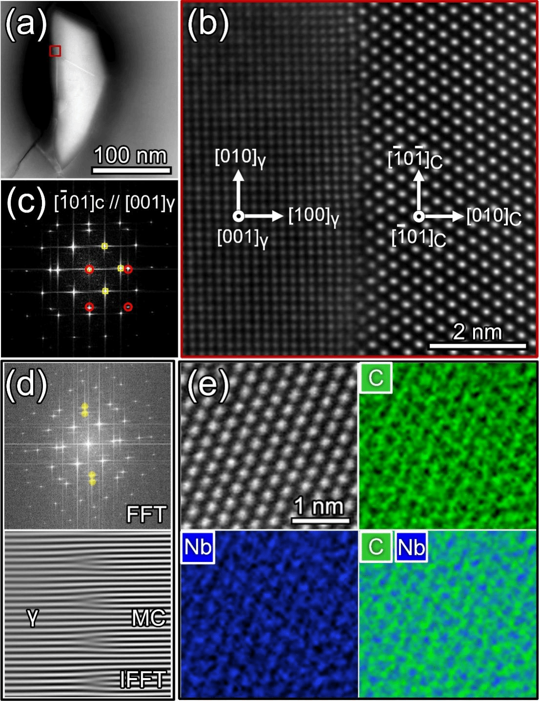 图 3 STA-12h处理后PBC合金样品中晶界碳化物的原子分辨成像和元素分布